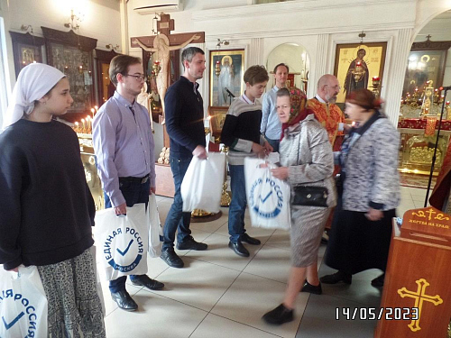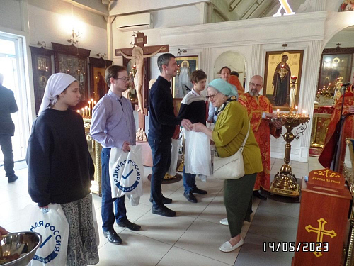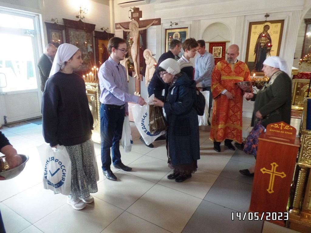 14 мая 2023 года, в Неделю 5-ю по Пасхе, по окончании Божественной Литургии в храме священномученика Серафима, митрополита Петроградского г.Москвы, по благословению настоятеля храма иерея Максима Глухих, была совершена благотворительная акция, приуроченная к празднованию Дня Победы 2023г.