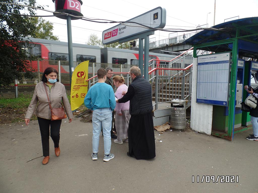 После праздничной Божественной Литургии, по благословению настоятеля храма иерея Максима Глухих, на привокзальной площади у ж/д станции «Бутово» участники акции предлагали пассажирам и жителям района листовки с информацией о Всероссийском Дне Трезвости, свечи и приглашали сходить в храм, поставить свечу и помолиться за близких и родных, страдающих недугом пьянства.
