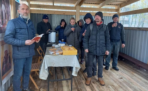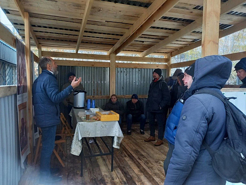 Во время бесед слушатели имели возможность согреться горячим чаем с выпечкой. Им были подарены небольшие иконы.