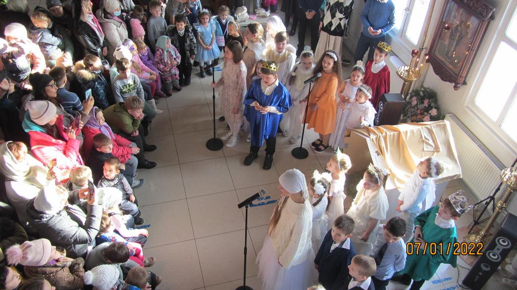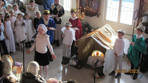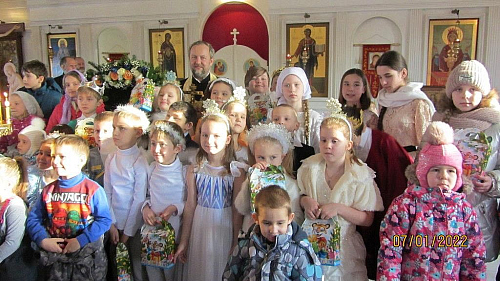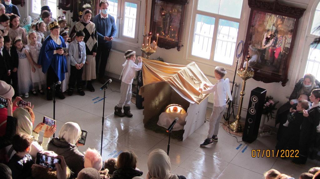 7 января 2022 года, в праздник Рождества Господа Бога и Спаса нашего Иисуса Христа, в храме священномученика Серафима, митрополита Петроградского, в Южном Бутове был отслужен праздничный Рождественский молебен со Святым Причастием для детей.