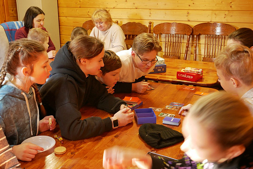 Педагог Воскресной школы Наталья Александровна провела мастер-класс по выпечке блинов. Ребята угощали всех желающих блинами и чаем. После трапезы отправились на игротеку. И дети, и педагоги нашли себе игры по душе, время пролетело весело и незаметно.