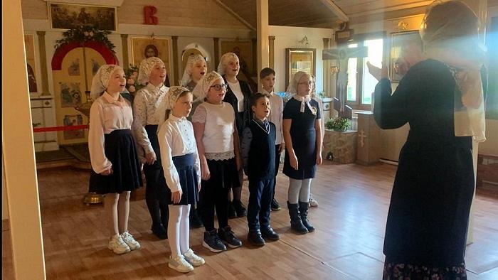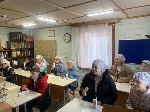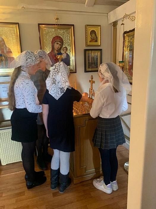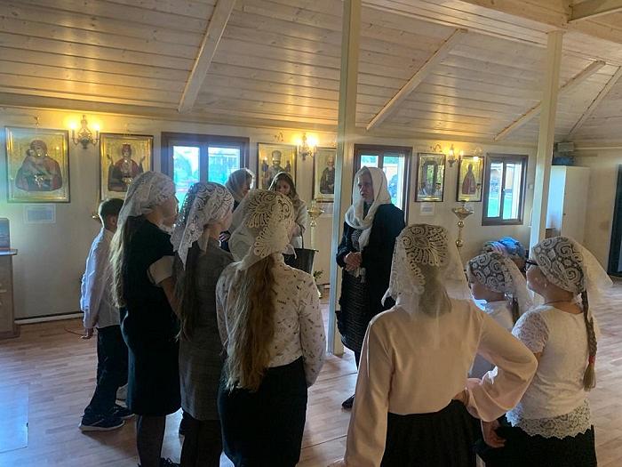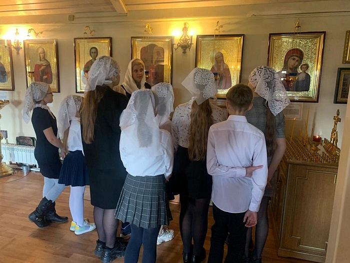 Гостей встретила методист храма Наталья Александровна Астахова, которая провела для ребят экскурсию по храму, рассказала о празднике «Покрова Пресвятой Богородицы» и вместе с детьми поговорила о смысле исполненных ими песнопений.