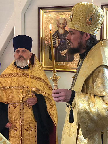 В конце Всенощного бдения настоятель храма обратился к епископу Раменскому Алексию с приветственным словом, поблагодарив от лица всех прихожан за архипастырский визит и поддержку в строительстве храма священномученика Василия.