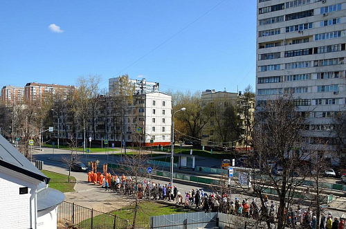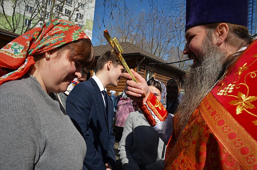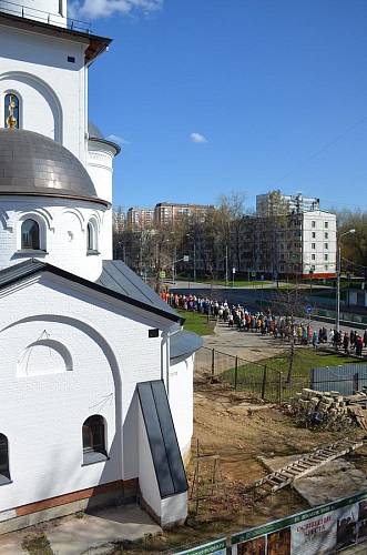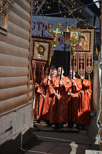 В сам день праздника по окончании Божественной Литургии впервые совершен торжественный Крестный ход вокруг строящегося храма в честь Патриарха Ермогена. По окончании богослужений Иерей Иоанн Омелянчук поздравил всех со светлым праздником Пасхи и обратился к прихожанам с проповедью.