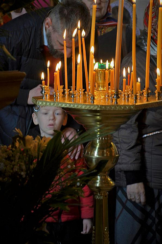 Стало доброй традицией исполнение воспитанниками Воскресной школы храма Праздничной Литургии, к которой дети готовились на протяжении всего учебного года и сугубо во время Великого Поста. Под руководством регента Виктории Куликовой дети старшего возраста исполнили песнопения Пасхального Богослужения. Дети младшего возраста участвовали с родителями в Богослужении в числе всех прихожан.