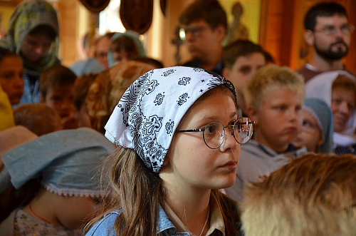 Настоятель окропил всех молящихся святой водой и поздравил детей с началом нового учебного года, вручив каждому шоколадку и молитвенное правило к началу учебного года. Каждому первокласснику также был вручен "Набор школьника".