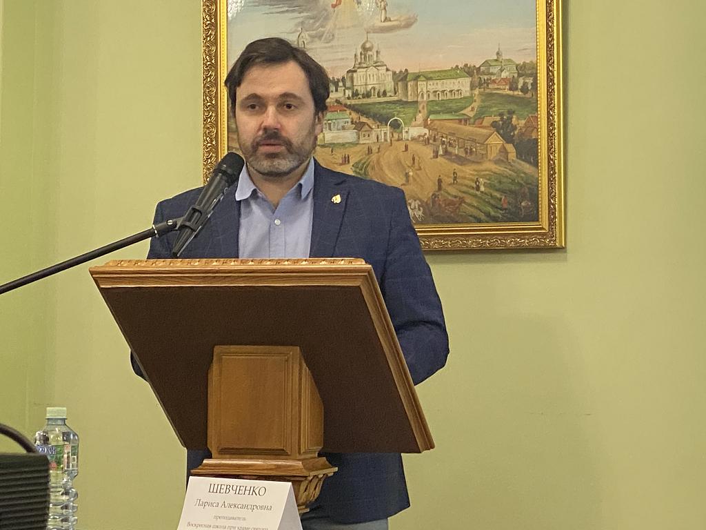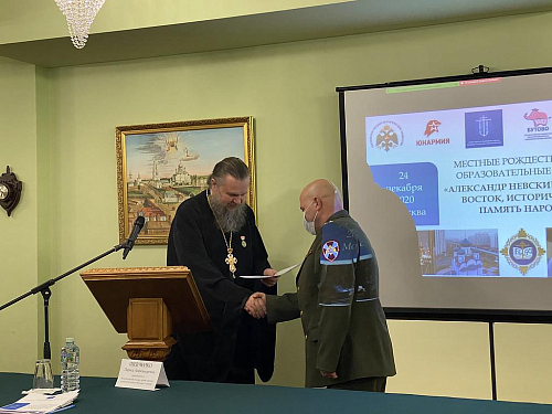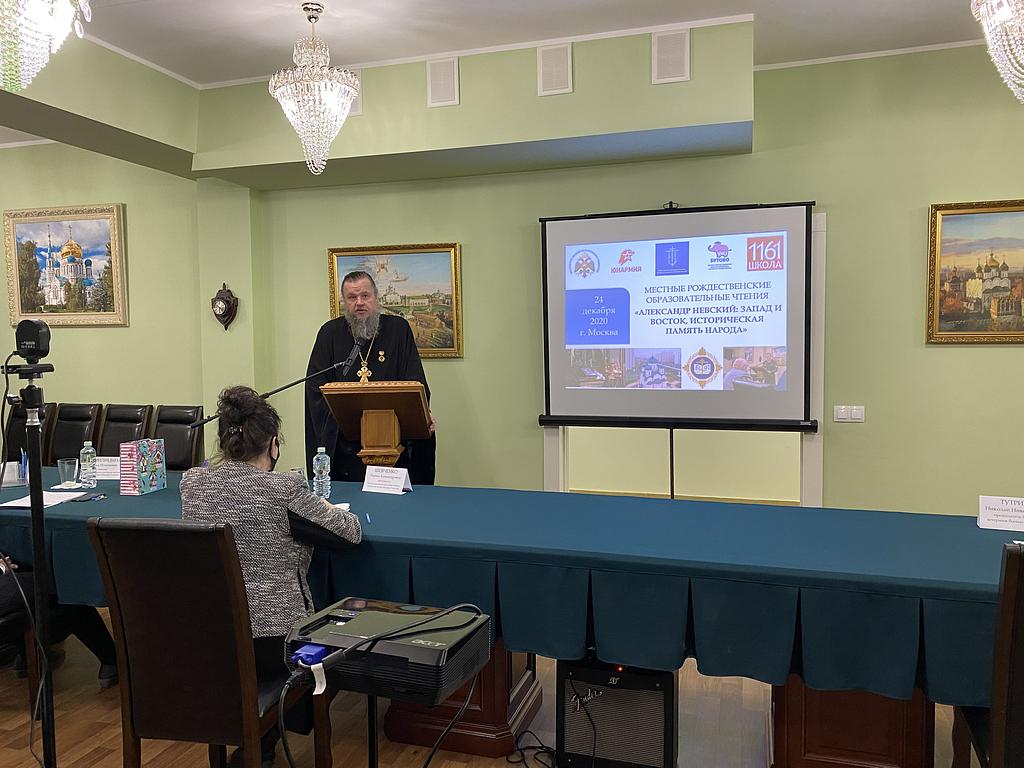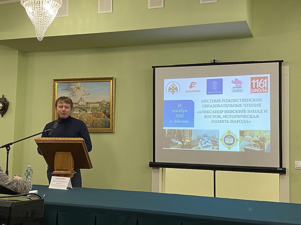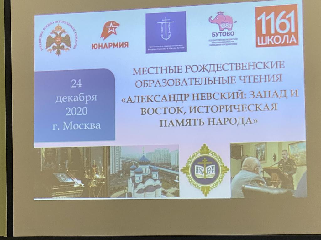 24 декабря в доме причта храма святого праведного воина Феодора Ушакова в Южном Бутове прошли местные Рождественские образовательные чтения «АЛЕКСАНДР НЕВСКИЙ: ЗАПАД И ВОСТОК, ИСТОРИЧЕСКАЯ ПАМЯТЬ НАРОДА», которые были приурочены к первой годовщине Великого освящения храма святого праведного воина Феодора Ушакова в Южном Бутове, 22.12.2019 г.