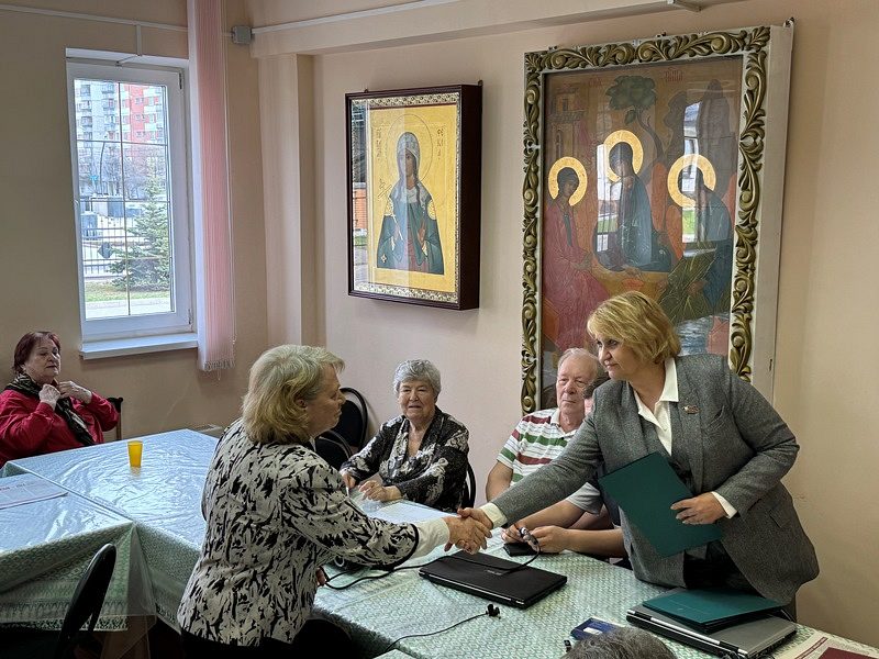 После мероприятия игумен Дамиан обсудил с Людмилой Ивановной различные вопросы приходской жизни и общественной работы.