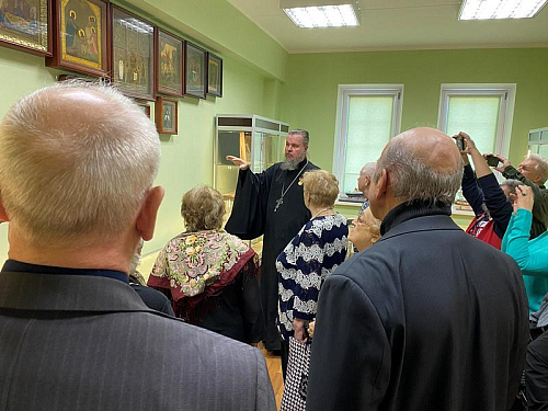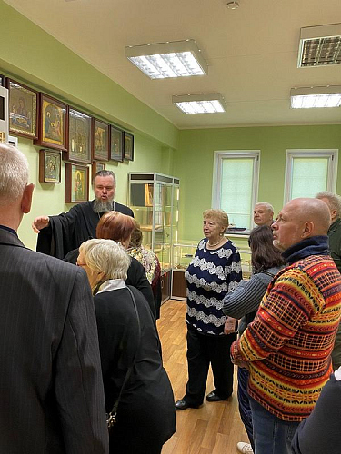 Представители Совета ветеранов посетили церковно-археологический музей Патриаршего подворья. Игумен Дамиан показал им особый экспонат.