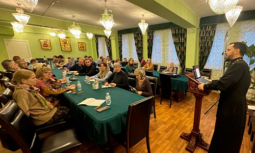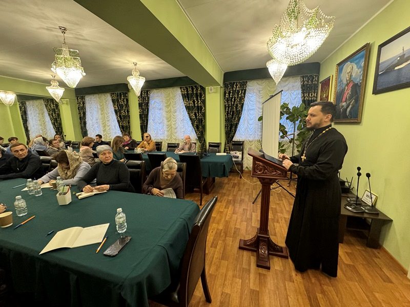 Первую лекцию о богослужении провел иерей Василий Kapaceв, клирик храма святой равноапостольной Марии Магдалины, Патриаршего подворья в Южном Бутове г. Москвы, помощник управляющего Юго-Западным викариатством г. Москвы по миссионерству, катехизации и противосектанской работе.