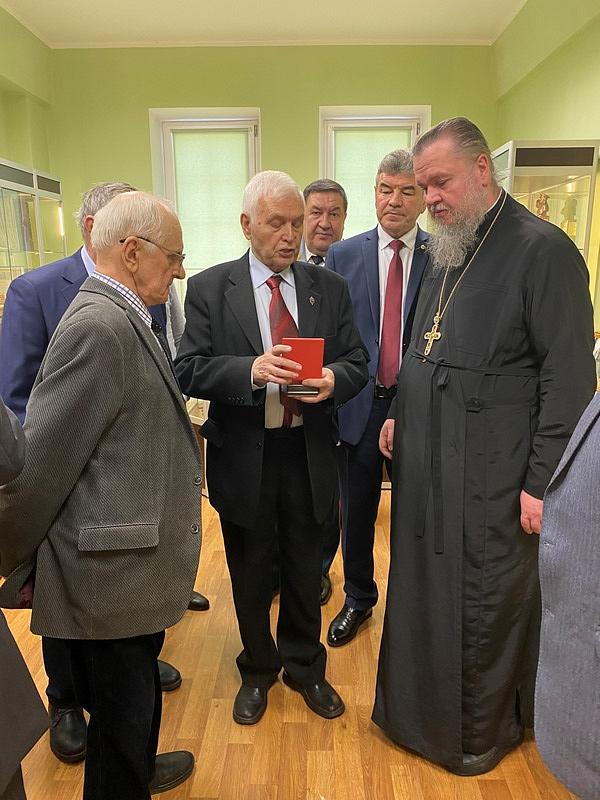 В свою очередь генерал-майор Чикулаев Ефим Гордеевич передал в музей Патриаршего подворья новые экспонаты, памятные медали, связанные с несением им воинской службы.