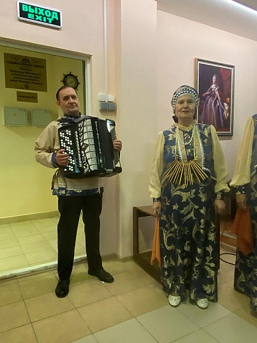В праздничном мероприятии принял участие творческий коллектив "Сударушки". Концерт прошел в актовом зале дома причта храма святого праведного воина Феодора Ушакова в Южном Бутове.