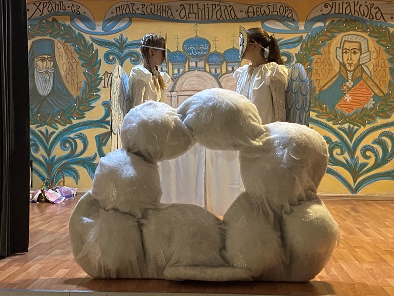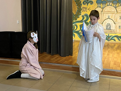 В актовом зале Воскресной школы собрались неравнодушные зрители: дети, родители, прихожане и гости. Красивое костюмированное действо, талантливая игра актеров-школьников, музыка, продуманный реквизит! Сказка была хорошо принята зрителями, в зале стояла тишина…и даже в музыкальных моментах представления был заложен глубокий смысл.