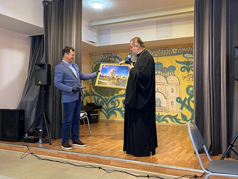 Игумен Дамиан также поблагодарил самого летчика-космонавта за его труды на благо России, вручив памятную медаль. Также Романенко Р.Ю. была передана в дар фотокартина с изображением храма святого праведного адмирала Феодора Ушакова в Южном Бутове, изготовленная в память Великого освящения храма, которое совершил 22 декабря 2019 года Святейший Патриарх Московский и всея Руси Кирилл.