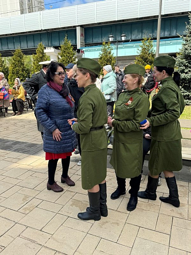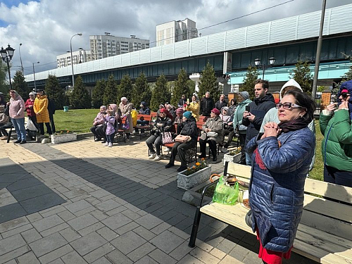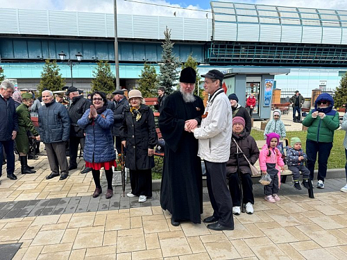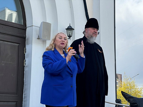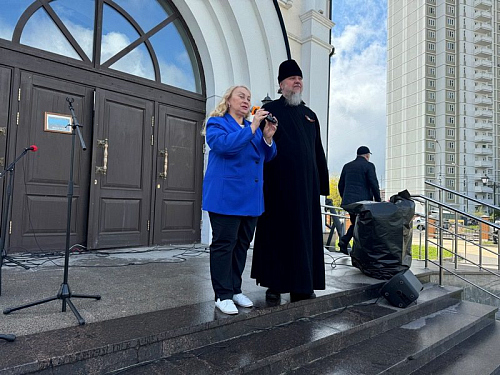Между номерами концерта перед собравшимися выступили почетные гости Патриаршего подворья, которые поздравляли жителей района и гостей с Днем Победы, делились своими мыслями и чувствами.