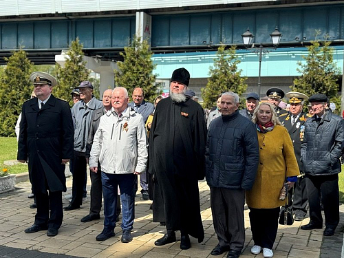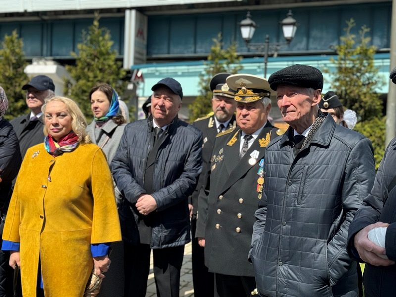 Председатель Совета ветеранов Черноморского флота капитана 1 ранга Анатолий Леонтьевич Егоров поздравил всех с Днем Победы и Днем Черноморского флота.