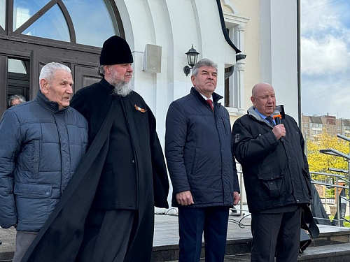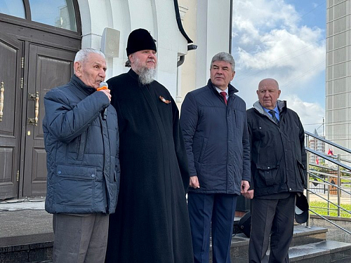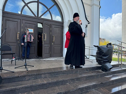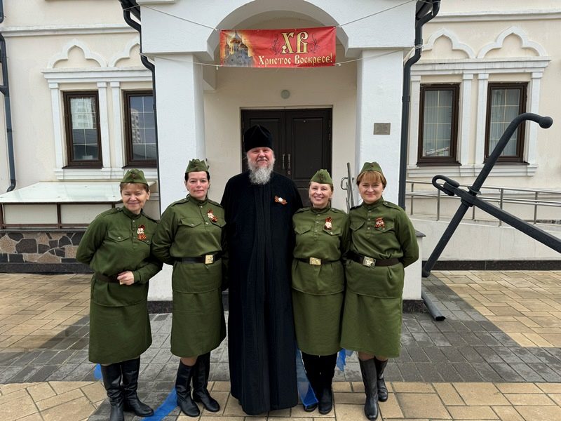 Настоятель храма игумен Дамиан (Залетов) поздравил прихожан с праздником Светлого Христова Воскресения, 80-летием Великой Победы и Днем Черноморского флота, на котором служил святой праведный воин Феодор Ушаков.