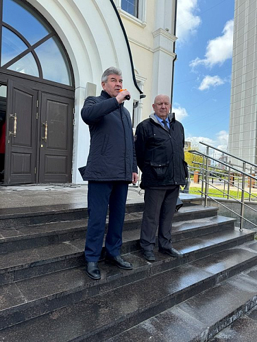 Поздравил настоятеля и прихожан друг храма Святого адмирала председатель Объединённого Совета ветеранов ВМФ Московского Комитета ветеранов войны капитан 1 ранга Валерий Иванович Васильев.