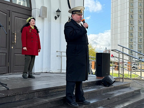 Председатель Общероссийского Движения поддержки флота, капитан 1 ранга Владимир Павлович Мальцев поздравил всех с праздником Великой Победы. Заместитель председателя ОДПФ капитан 1 ранга, Геннадий Петрович Толузаков вдохновенно и с чувством прочитал стихотворения собственного сочинения об адмирале Ушакове, о войне, о флоте.