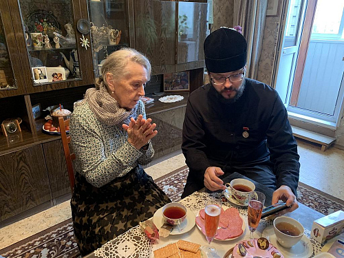 Ветераны приняли участие в Таинствах Исповеди и Причастия. Встреча закончилась беседой за совместной трапезой.