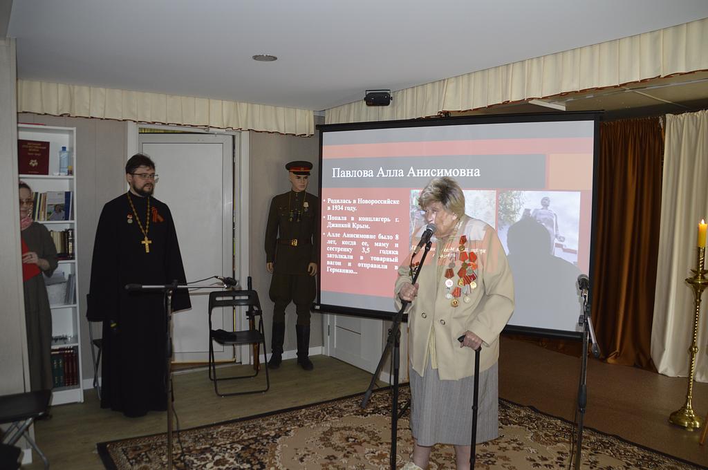 В приветственном слове настоятель храма подчеркнул, что важно хранить память не только о защитниках Отечества, отстоявших священные рубежи, но и о безвинно пострадавших от рук нацизма, в том числе о детях войны, об обездоленных малолетних узниках фашистских концлагерей и гетто: «У них отняли не только дом, хлеб, материнскую ласку – у них отняли Родину и свободу. Невозможно простому человеку, не видевшему войны, представить даже маленькую долю того, что видели дети, оказавшиеся в оккупации и в лагерях смерти».
