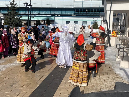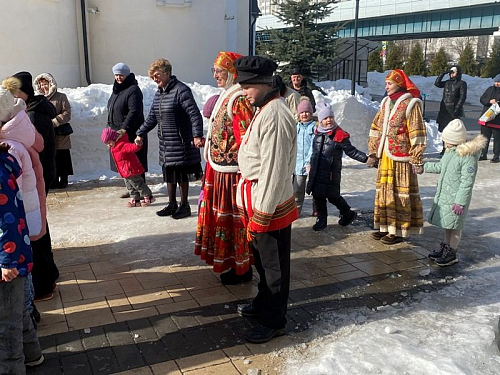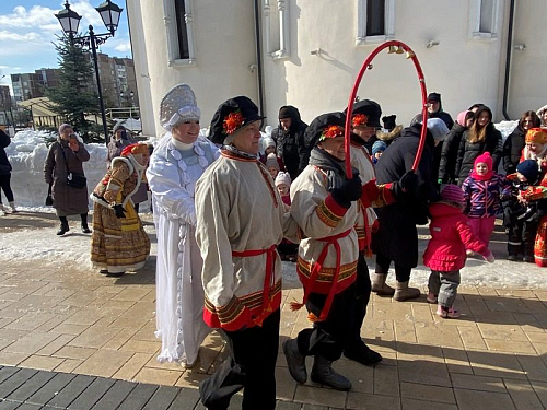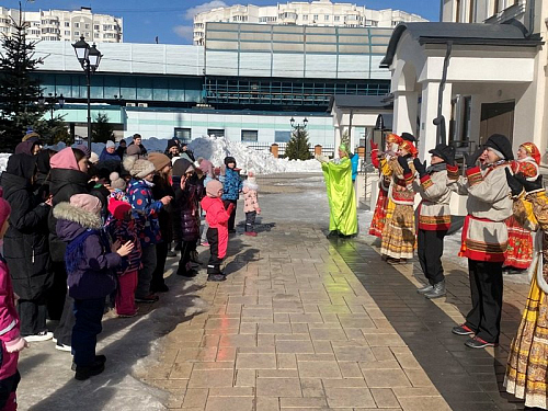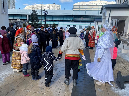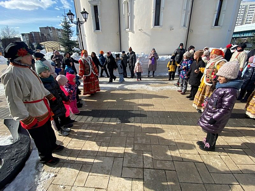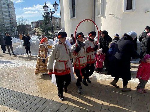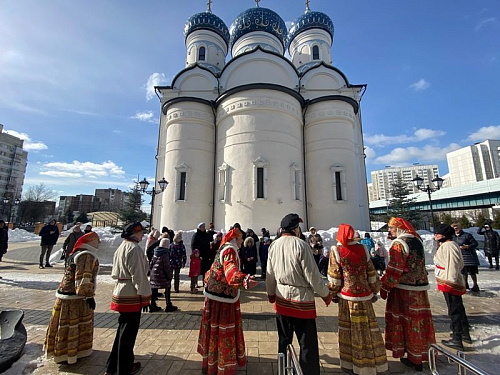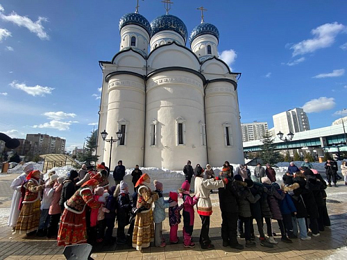 Молодежь храма и учащиеся Воскресной школы Подворья под руководством Чумаковой Елены Николаевны в красивых русских народных костюмах вовлекали прихожан в праздничное действо!