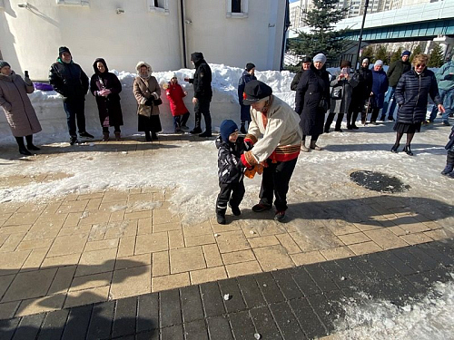 Праздник начался на храмовой территории, между храмом и домом причта, сразу после окончания Божественной Литургии.