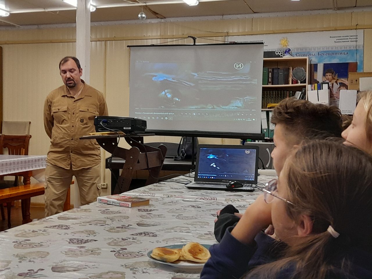 Перед показом ведущий кинолектория, катехизатор храма, Михаил Погорелов вкратце рассказал о событиях 1612 года, когда покровительство Пречистой Богородицы помогло народному ополчению одержать победу над польскими захватчиками.