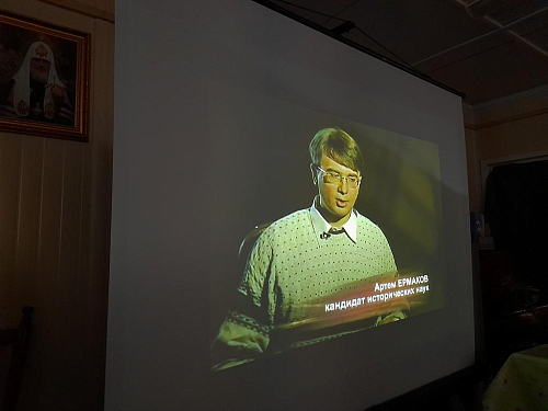 Показ в рамках кинолектория вел катехизатор храма Михаил Погорелов.