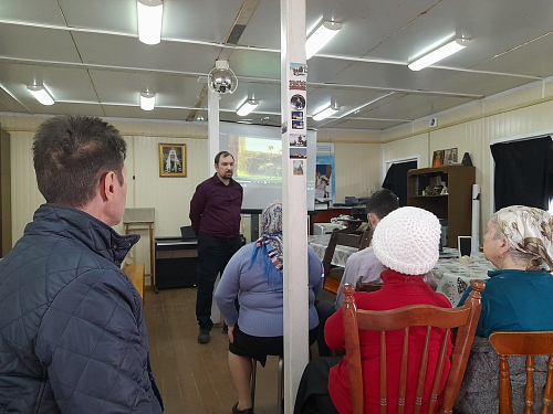 Перед показом ведущий кинолектория, катехизатор храма, Михаил Погорелов вкратце рассказало жизни и мученической кончине святого Пророка Иоанна Предтечи, а также об одной из наиболее почитаемых христианских святынь – его честной главе.