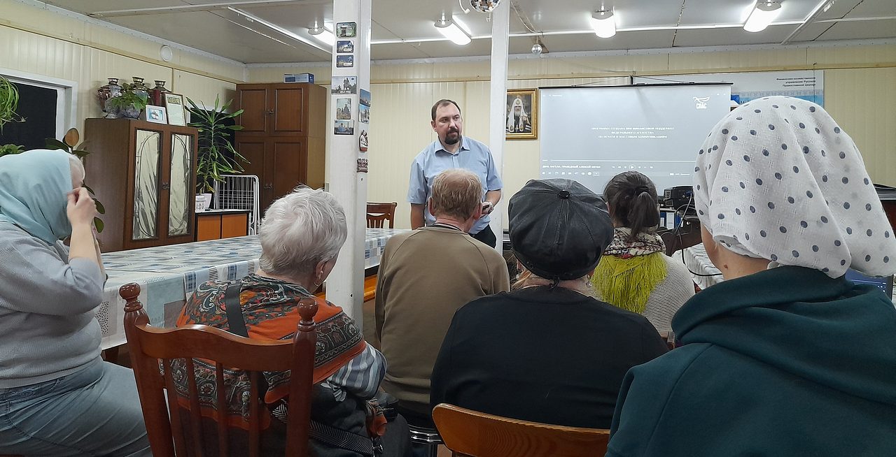 Показ в рамках кинолектория провел катехизатор храма Михаил Погорелов. Во вступительном слове ведущий вкратце рассказал об известном московском старце,настоятеле Никольского храма в Кленниках, молитвеннике, прозорливце, святом праведном Алексии Московском (Мечёве).