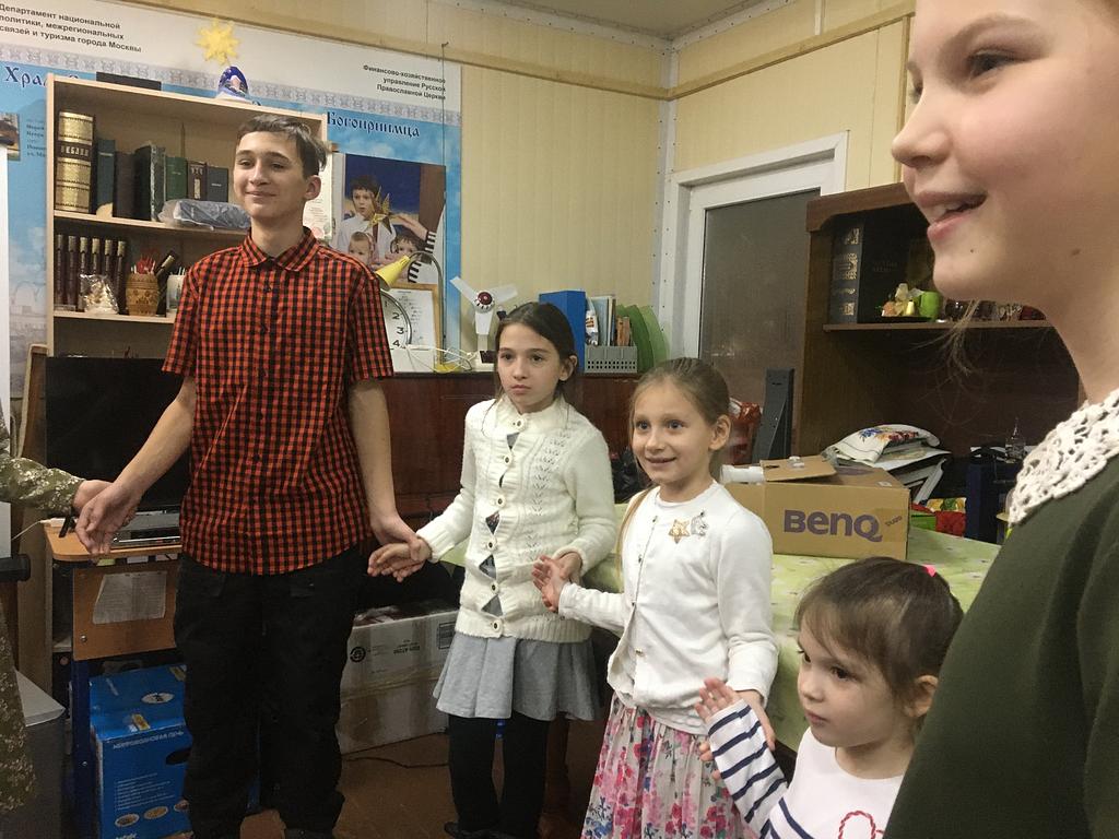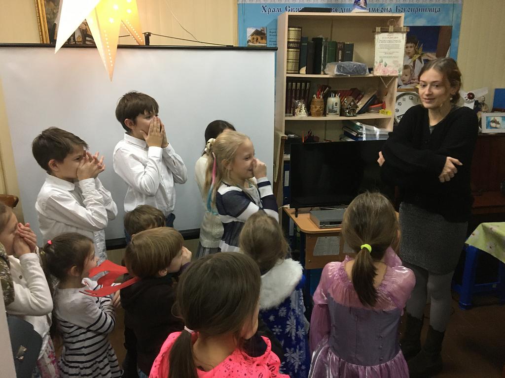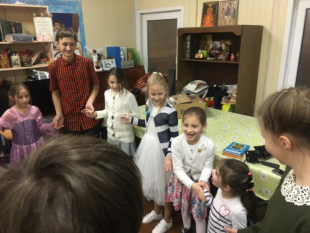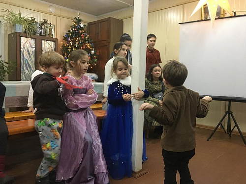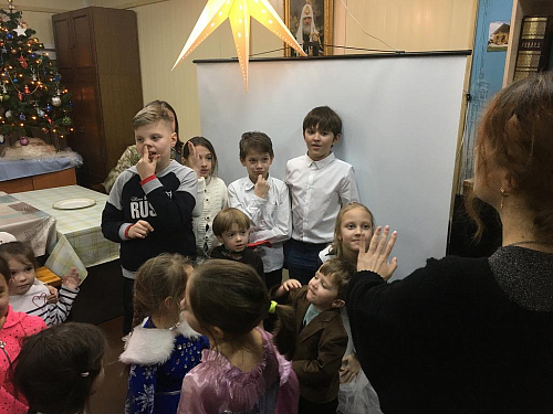 В начале дети исполнили рождественские колядки, где им аккомпанировала на фортепиано бывшая воспитанница Воскресной школы Василиса. Затем ребята выступили с сольными номерами: Екатерина Евстигнеева прочла рождественские стихи, Николай Семкин исполнил несколько музыкальных произведений на аккордеоне. Далее участники концерта играли в пантомиму и водили хоровод.
