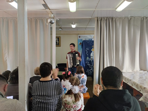 Сначала Николай Семкин исполнил на аккордеоне классические произведения: прелюдию «Ре минор» А.Волпи и «Весёлый кабальеро» Пьетро Фроссини.