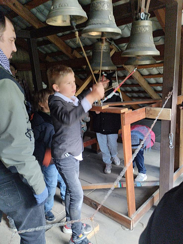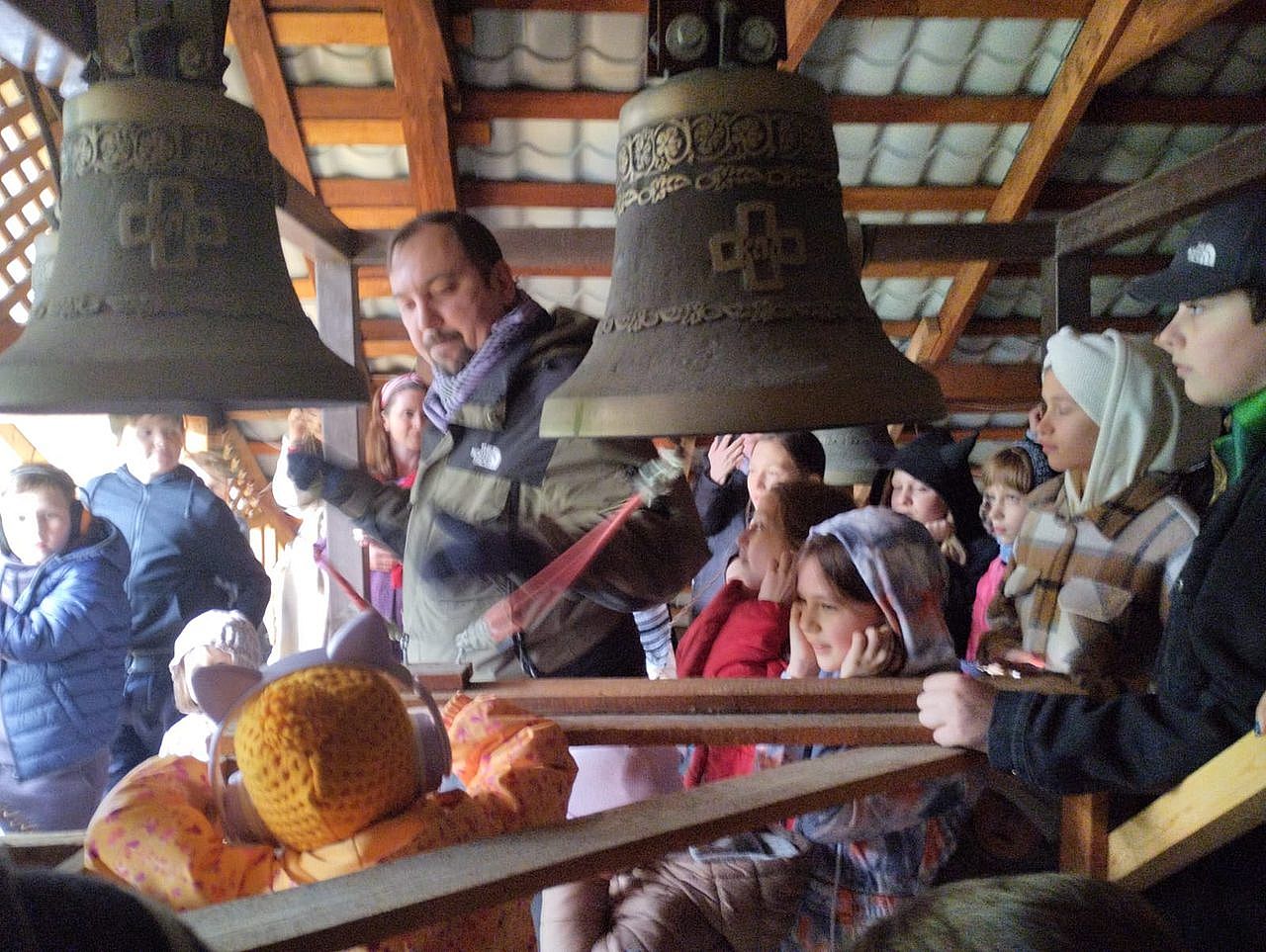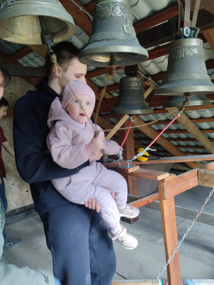 Вот и сегодня, перед Пасхальной Вечерней, юные прихожане собрались на колокольне.