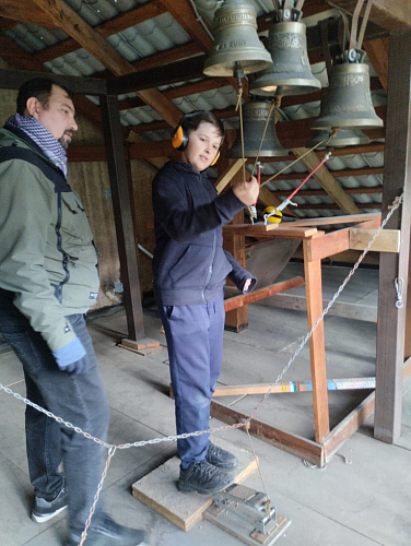 Затем ведущий показал технику колокольного звона и несколько основных видов перезвона, таких как благовест, трезвон, перебор и другие.