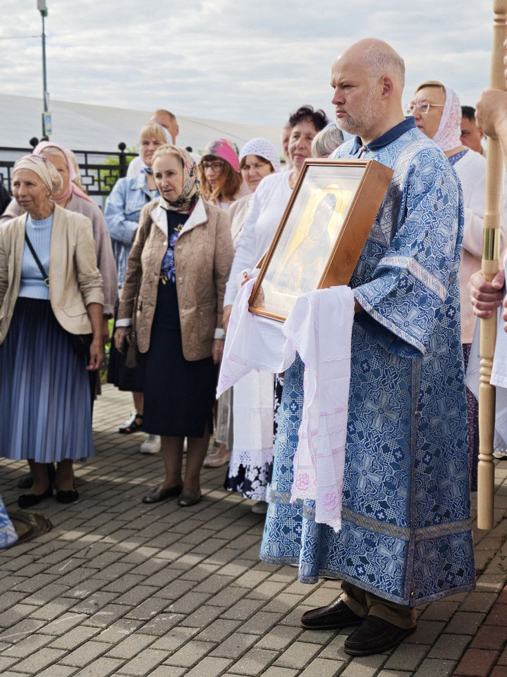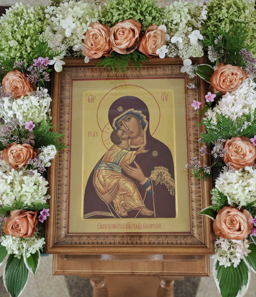 По окончании Литургии вокруг храма был совершен крестный ход, а затем пропето величание Пресвятой Богородице перед Ее иконой Владимирская.