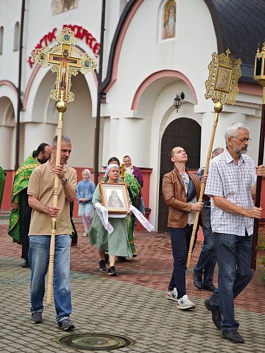 После заамвонной молитвы вокруг храма был совершен крестный ход, а затем пропетовеличание преподобному Серафиму Саровскому перед его иконой.