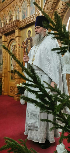 По традиции, дом Божий был убран и украшен, а перед крыльцом установлен вертеп из еловых ветвей с иконой Рождества внутри.