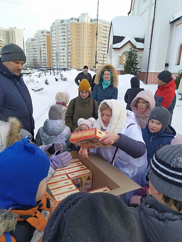 Сообщество молодежи и служба милосердия храма устроили Рождественские гуляния для маленьких прихожан, которые пришли на праздничную Божественную Литургию.