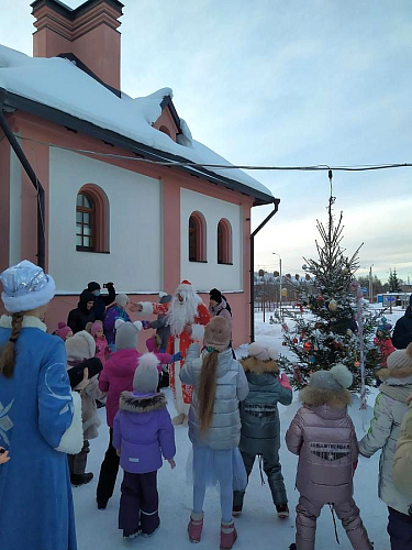 Дети играли с Дедушкой Морозом и Снегурочкой, водили хороводы, рассказывали стихи, пели колядки, по подсказкам Метелицы искали рождественские подарки. Всем детям были вручены поздравительные сладкие гостинцы.