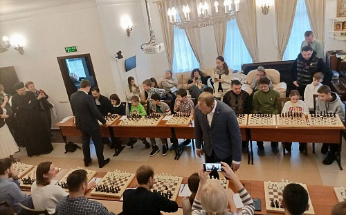 В сеансе одновременной игры с гроссмейстерами боролись более двадцати участников: прихожане, алтарники и воспитанники Воскресной школы храма Всех преподобных отцев Киево-Печерских и храма священномученика Ермогена, Патриарха Московского и всея Руси, чудотворца, в Зюзине, а также представитель шахматной школы "Вертикаль" г. Моршанска и преподаватель шахмат Воскресной школы храма Рождества Богородицы с. Анискино Московской области.