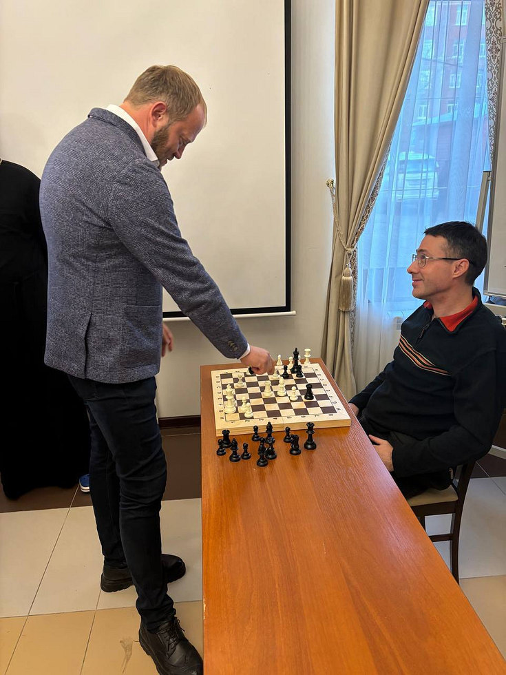 10 ноября 2024 года на приходе храма Всех преподобных отцев Киево-Печерских состоялась уникальная встреча c известными шахматистами нашего времени Сергеем Карякиным и Денисом Хисматуллиным.