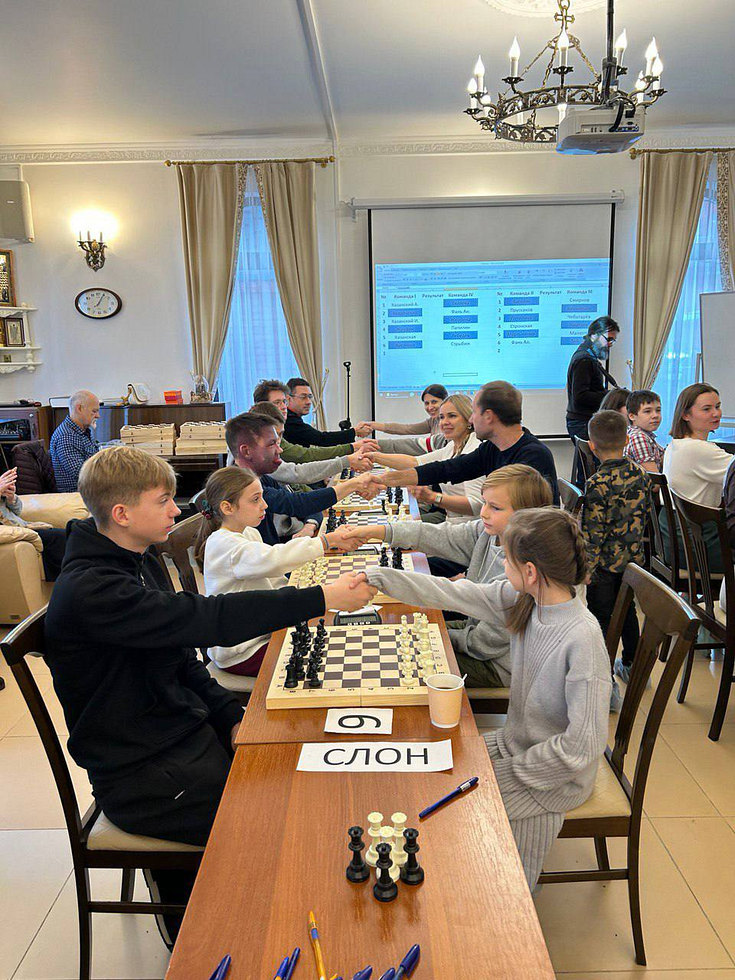Всем шахматистам также были вручены уникальные памятные грамоты в фирменном стиле нашего прихода об участии в сеансе одновременной игры. А в качестве разминки перед встречей с гроссмейстерами состоялся командный турнир – это был круговик с таймингом по 10 минут, где участвовали 24 шахматиста. Победители получили кубок и шоколадки.