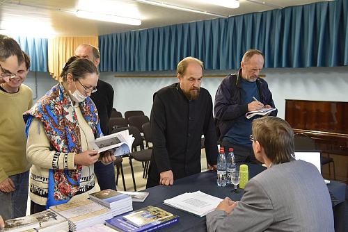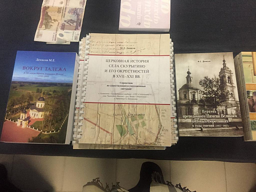 Денисов М.Е. также представил свои книги по краеведению и написанию приходских историй, которые можно было приобрести на пожертвование.