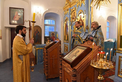 По окончании Богослужения духовенство и молящиеся совершили славление перед праздничной иконой Богоматери.