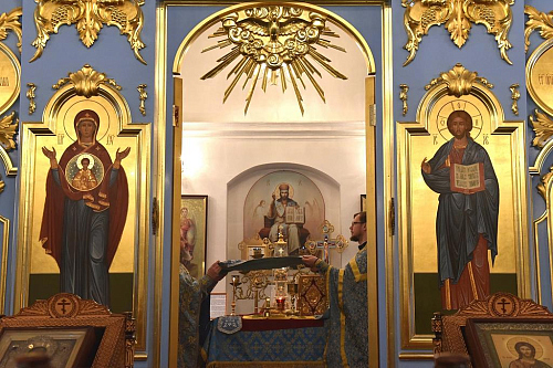 10 декабря 2021 года, в престольный праздник храма Знамения иконы Божией Матери при Федеральном государственном бюджетном учреждении "Институт теоретической и экспериментальной физики имени А.И. Алиханова Национального исследовательского центра "Курчатовский институт", благочинный Андреевского церковного округа протоиерей Николай Карасев, настоятель храма Живоначальной Троицы в Старых Черемушках, возглавил служение Божественной Литургии.