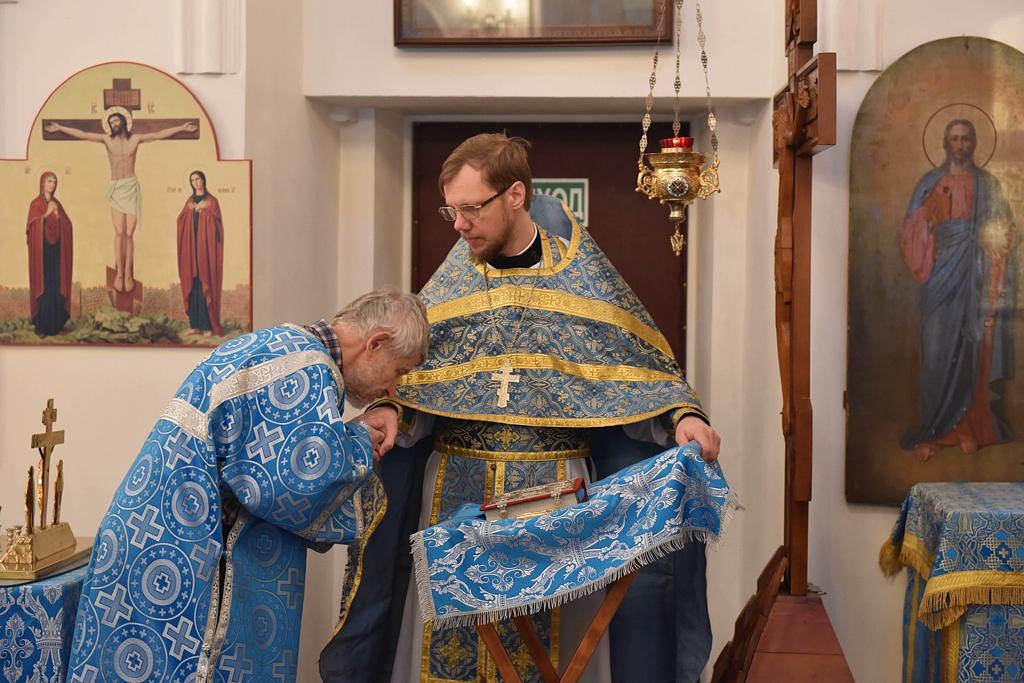 Благочинному сослужил клирик храма Живоначальной Троицы в Старых Черемушках иерей Константин Сутчев.