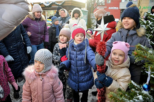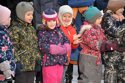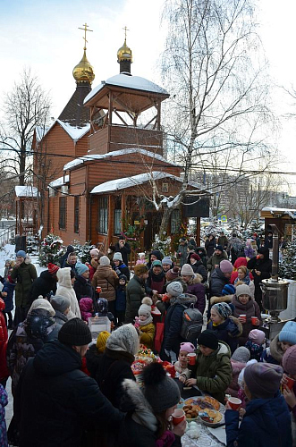 На площади перед храмом под весёлую музыку сказочные персонажи Дед Мороз и Снегурочкапроводили с детьми игры, конкурсы и хороводы. Продолжился праздник пением Рождественских колядок под аккомпанемент аккордеона и а-капелла. Доброе, радостное и чудесное настроение объединило в этот день всех, кто пришел на праздник.