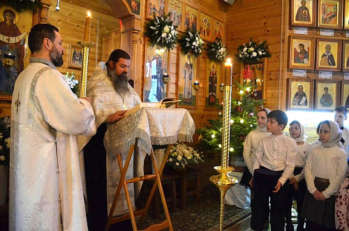 В своей проповеди иерей Иоанн Омелянчук поздравил прихожан с праздником Рождества Христова, а по окончании богослужения вручил детям сладкие подарки, пригласив принять участие в праздничных святочных гуляниях.