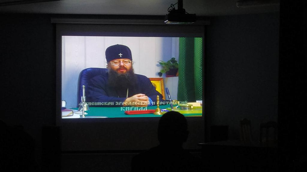 Затем перед прихожанами продемонстрировали художественно-публицистический фильм «Заступник», посвященный святителю Тихону (в миру Василий Иванович Белавин), патриарху Московскому и Всея Руси. Он был избран на Патриаршество 18 ноября 1917года. На Патриаршем престоле находился семь лет, до своей кончины в 1925году. Именно в этот период молодая власть большевиков обрушила чудовищные репрессии на Православную Церковь. Фильм рассказывает о малоизвестных страницах современной истории, о разрушении и осквернении святынь, об изъятии церковных ценностей, о стойкости духа в те сложные времена самого Патриарха Тихона. В фильме прозвучала музыка С. Рахманинова, П. Чайковского, народные и духовные песнопения. Сам Виктор Хотулёв исполнил соло на флейте. Зрителям трудно было сдержать слезы, глядя на редкие кадры разорения святых мощей преподобного Сергия Радонежского.